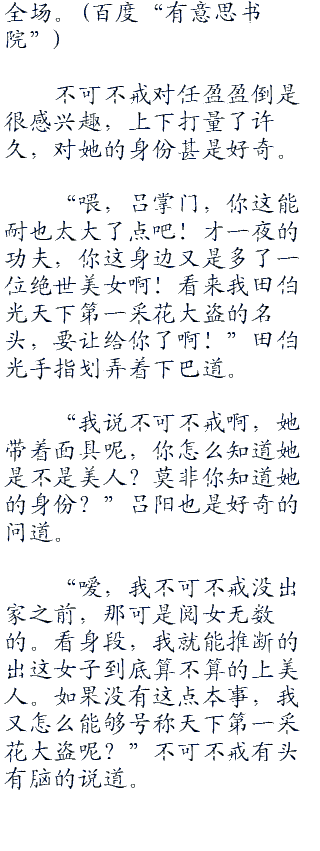 不可不戒对任盈盈倒是很感兴趣,上下打量了许久,对她的身份甚是好奇。