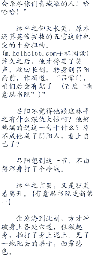 林平之阴冷笑道,“余沧海,没那么容易。今日我不杀你,我要你在等待死亡的恐惧之中,慢慢迎接死亡的到来!我会杀尽你们青城派的人!哈哈哈!”
