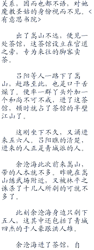 出了嵩山不远,便见一处茶馆,这茶馆设立在官道之旁,专为来往的脚客卖茶。