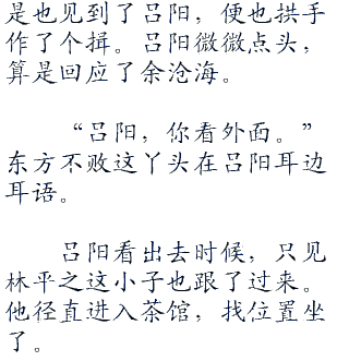 余沧海进了茶馆,自是也见到了吕阳,便也拱手作了个揖。吕阳微微点头,算是回应了余沧海。