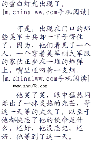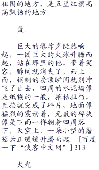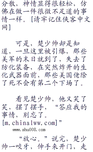 “嗯。”他点了点头,“你走吧,我该进行我的使命了,虽然我的能力有限,但是,毁掉这个防化团还是没问题的。你不要说
