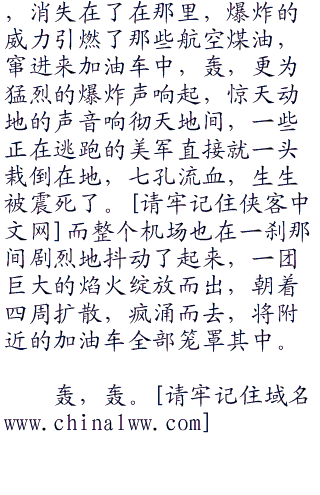 “**。”航空煤油喷洒而来,让那个美军中校吼了一声就被冲击到了地上,说不出来话来。