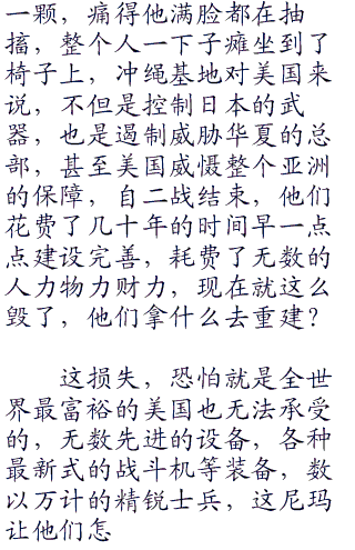 突然,一个美军上校大声地叫着,可是,跑着,跑着,他似乎闻见了一点刺激性的腥味儿,接着像是有雨点落到了脸上,有些痒痒的,他的身体一抖,赶紧扔掉手中的枪,双手抬起,在脸上一抹,一看。