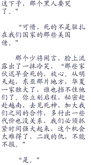 又是一阵急促的脚步声响起,一个美军情报局的官员快步走了进来,满脸苍白,手都在不断地抖着,脸上的冷汗更是如雨点一样,不断滴落而下。