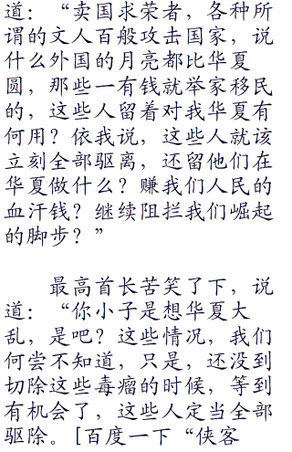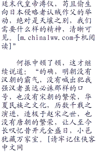 何振中倒是没有丝毫的顾忌,沉声说道:“自满清入关实行高压政策和文字狱以来,我华夏对气节的推崇就已经被那些奴才哲学所取代,到现在,这种流毒也没有真正清除掉,所以,今天,我华夏各领域才会有如此多的走狗、奴才、