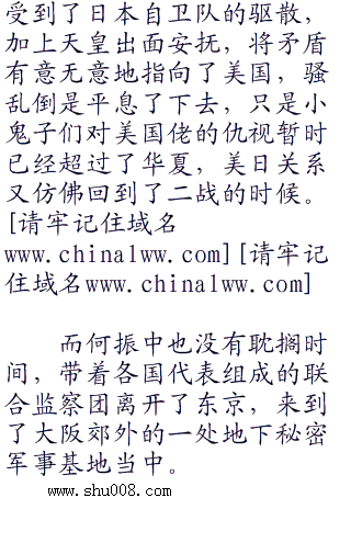 改善个屁,如果有机会,他恨不得立刻就出兵,踏平华夏,以报今日之耻,安倍甚至发誓,如果还能像二战的时候那样,他保证,一定要将