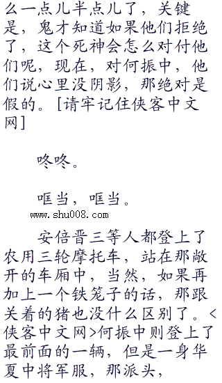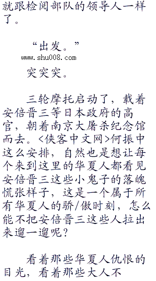 “何将军,我们是很有诚意来向当年的额死难者道歉的,可你们这是什么意思?”安倍晋三差点儿没把牙齿给咬碎,手抖着,指着外面停放着一溜烟的农用三轮摩托车,这尼玛是拉猪吗?