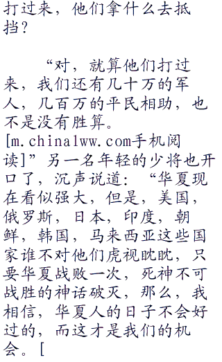 而世界各国的高层们也是心情复杂,华夏如此强势的宣言,这代表着什么,不言而喻,他们隐隐觉得这又像是一个法西斯国家在崛起了,如此的疯狂,敌视一切外人,只是,不同的是,华夏还保持克制,实力也比当年的那几个法西斯国家强大了太多,印尼,越南,再到日本,都是很好的例子。