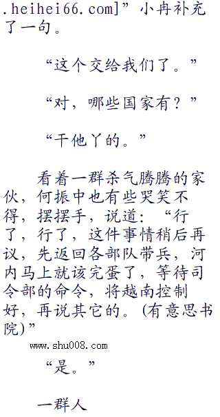 司徒凌峰,隐士,紫电等人也都回过神来了,对视了一眼,都看到了各自眼中的震惊,防守严密,被某些人叫嚣是东方斯大林格勒的河内就这么完蛋了?这让他们想到几十年来前,美国佬在日本投下的两颗原/子弹的事情,轻轻松松击垮了日本人的信心,逼迫他们放弃抵抗,跪地投降。
