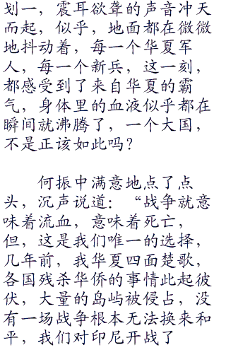 就在世界各国为华夏最新研发的镭射轨道激光炮所忧心忡忡的时候,东南亚战区的所有主战部队都已经进入了最后的准备阶段,等着总攻开始的那一刻。而从国内调集而来的五万新兵也都被安排到了阵线后方,观战,默默地等待着属于他们的第一次战争的洗礼。