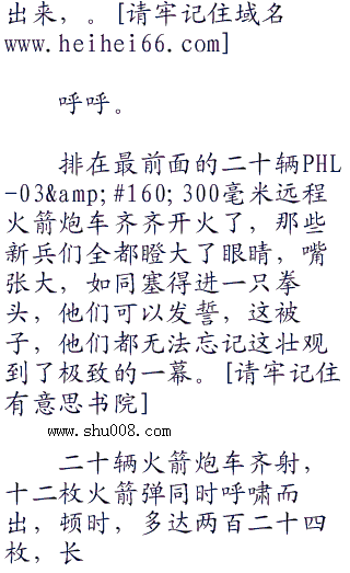 覆盖在PLZ-05≈ap;ap;#160;155毫米自行加榴炮,PLZ-05≈ap;ap;#160;122毫米自行榴弹炮,PHL-03≈ap;ap;#160;300毫米远程火箭炮,PTL-02≈ap;ap;#160;100毫米轮式突击炮上的伪装网被齐齐拉开,一股冰冷的杀气立刻散发出来,足足上百门重炮成三排,一字排开。