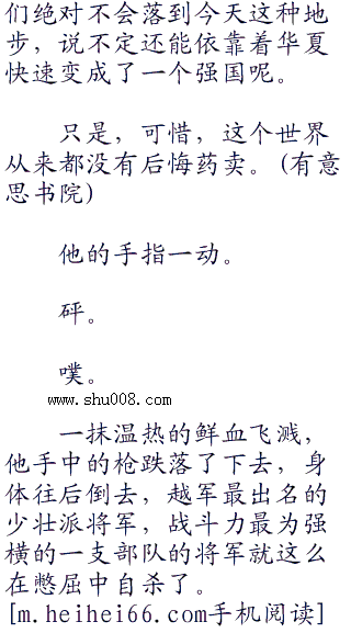 看着那些训练有素的士兵在07炮火变成了一堆血肉,看着那些进口的装备化作一团团废铁,看着那些跪地投降的人,他的眼中露出了悲哀的绝望之色,抽出了他的配枪,缓缓抬起了手,将