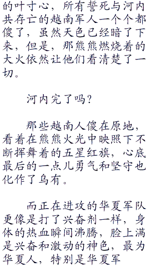火光,烟尘不断地升腾而起,全美式装备,号称越军三大王牌之一的153旅此刻就像是无助的小孩子一样,哭喊着,四处奔逃着,在炮火中被炸的血肉模糊,四分五裂。随着华夏轰六编队的到来,那些越南精锐们再也没有任何的勇气继续下去了,一个个扔掉了枪,跪在地上,高举着双手,满脸的惊恐之色,更是如筛子一样抖个不停。