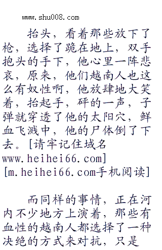 “不。”一个越南士兵大吼了起来,不断地摇着头,满脸泪水长流,看着脚边的一具具尸体,他像是疯了一样,跪在了地上,手不断地捶打着地面,很快就鲜血四溅了,他却仿佛不知道痛一样,嘴里喃喃,“死了这么多兄弟,怎么能够投降呢?血战到底啊。”