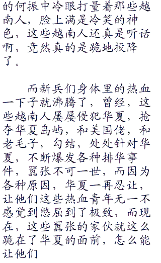 在三十余辆99式主战坦克的带领下,大量的军卡载着新兵们朝着越南人的首都河内而去,沿途还能看见一个个巨大的弹坑和那些被撕裂地支离破碎的越军防线,这些战壕,防空洞没有任何的抵抗之力就在华夏人的炮火下化作了乌有。