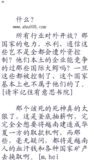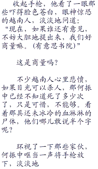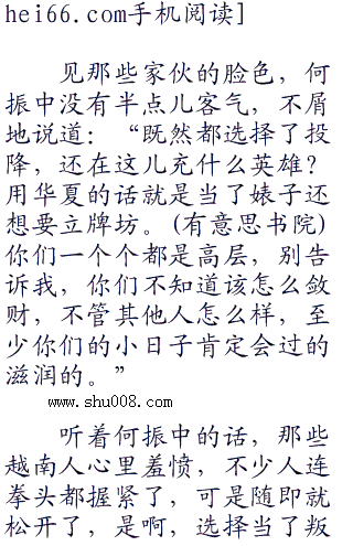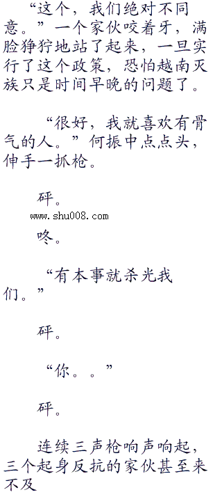 一时之间,那些越南人的脸色都阴沉到了极点,这年头谁不知道,没有军队,手中没有枪,那绝对就只能任人鱼肉啊,他也没有想到,何振中竟然给他们越南来了个这样绝户计,一旦同意了,那以后,除了跟在华夏身后,那他们可是没有半点儿选择了,再加上整个越南禁枪,那以后他们拿什么去去推翻华夏人的统治?