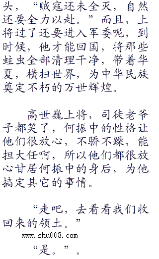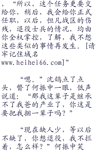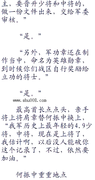 何振中脑海中蓦然浮现出了当时跟沈鸽一起跟着那位抗战老兵的情形,是啊,国家和人民的确欠了这些老人太多啊。他看向了沈鸽