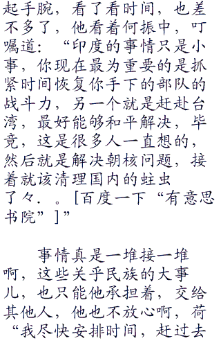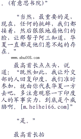 “一分钟前,外交部发来消息,说,印度即将举行大规模的阅兵活动,邀请我们参加。”那位上校敬了个军礼,“并且,还有军事交流活动,询问我国是否参加。”