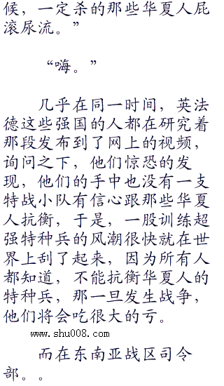 就在全华夏都被东南亚战区所属的四支特战突击队所震撼,热血沸腾的时候,其他国家的军队高层,特战专家们却是满脸的凝重之色,甚至,心里都不可遏制地升起了一股股恐惧之意。