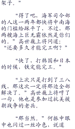 其实,由于何振中的年纪的确太年轻了,所以就算已经晋升上将了,高世巍上将,最高首长等人依然是把他当成后辈一样来看,当然,这也意味
