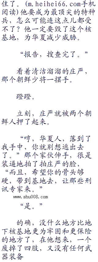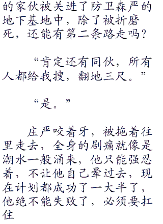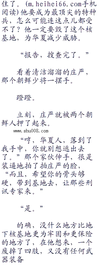 而出去后,庄严一路潜伏,重新来到了靠近那个朝鲜师的地方,不断地调整着他的心,要想成功,必须要演的像,不能露出一点儿的马脚,否则他死了没关系,任务失败就严重了。