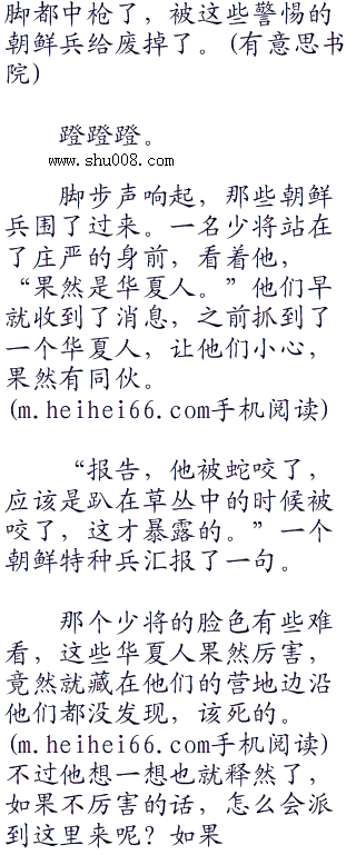 他从草丛中抓了一条蛇,抓在手中,趴在那里安静地等着,直到朝鲜兵的巡逻队走过来,他猛的将蛇头按到了左手手腕上。首发