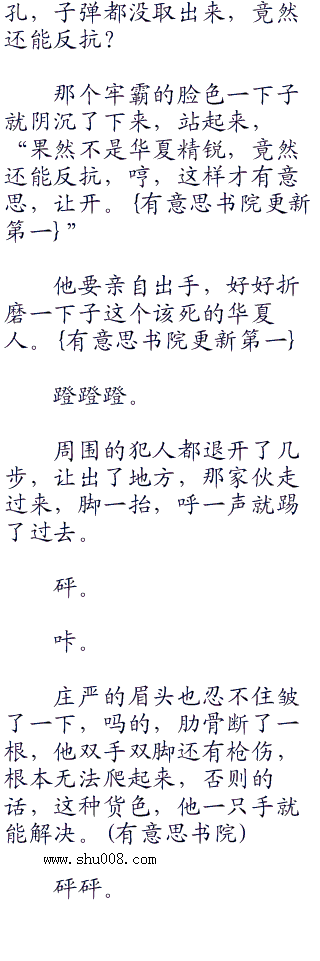 牢房中的范人都为了过来,满脸狰狞的冷笑,他们都属于政治犯,这在独裁统治的国家很常见,这辈子都不可能离开这个地下核基地的,对于他们来说,能活一天是一天,最大的快乐就是相互折磨,发泄。首发
