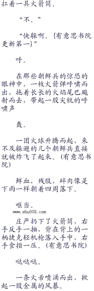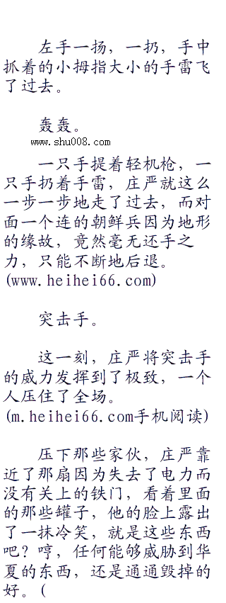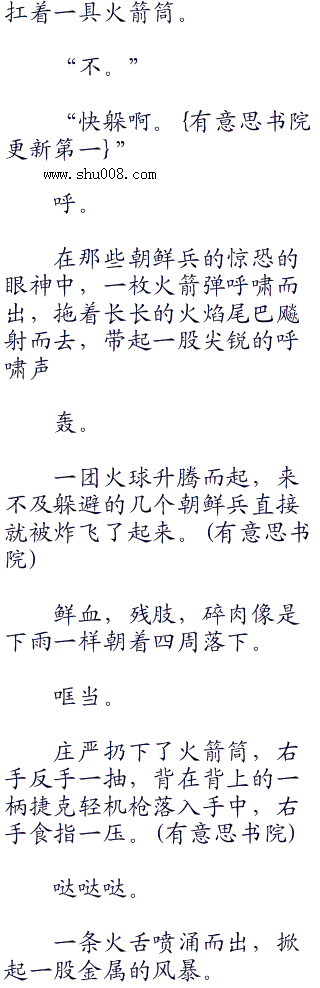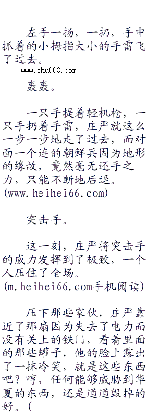 咚一声,一个慌乱跑过来的朝鲜兵一头栽倒,庄严脸色没有丝毫的改变,提着枪,从尸体上走过,继续朝着前面走去。
