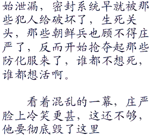 杀人,放火,强.奸成了这个时候的主旋律,被之前老炮几人的袭击搞得精神紧绷了一晚上,这才刚刚睡下的朝鲜人根本没有组织起有效的反击,在这些很熟悉地下核基地的犯人的破坏下,整个核基地彻底乱套了。
