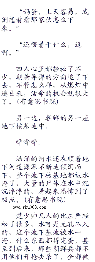 趁着那些朝鲜兵仓皇逃走,混乱一片的时候,穿戴着防化服的庄严穿过了那道封锁线,往里面走,直接来到了发射井的位置。首发