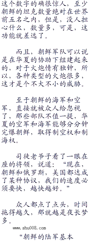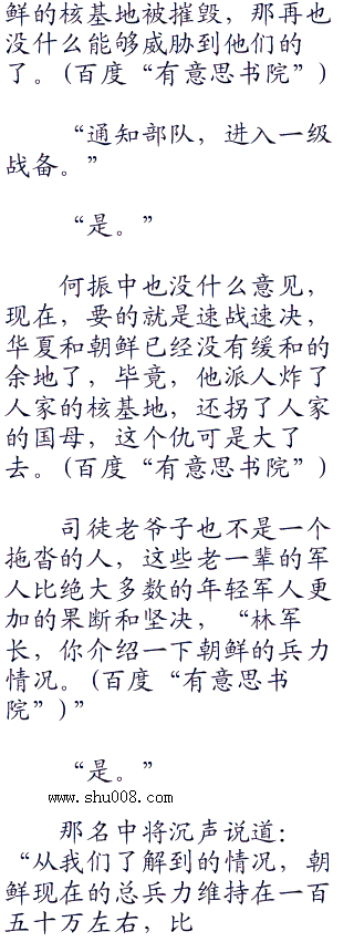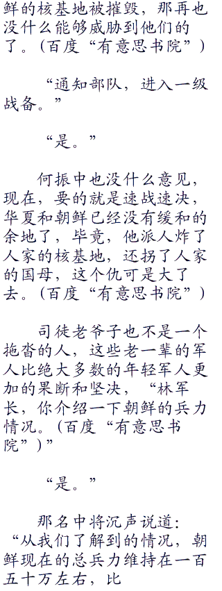 何振中环视了一眼众人,沉声说道:“现在,朝鲜的两座地下核基地均已被我们的特种兵彻底摧毁,现在,朝鲜对我们的核威慑已经彻底消除。”