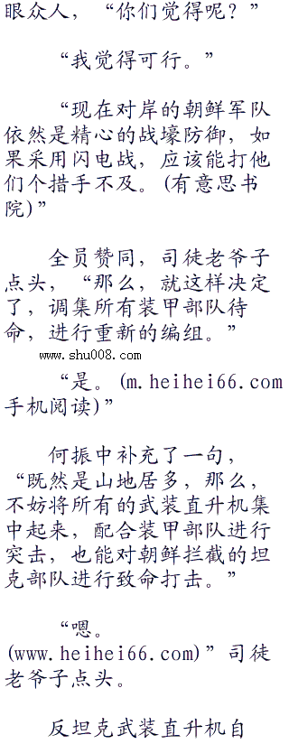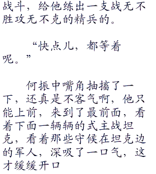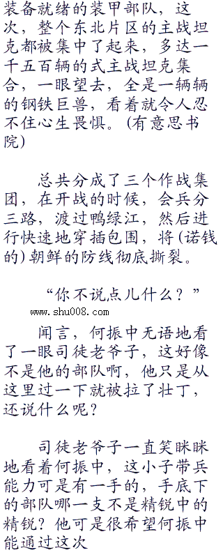 “我?”何振中微微一愣,有些不好说,这里毕竟是东北集团军的地盘,可不是他的部队,有些东西需要忌讳,虽然司徒老爷子不会在意,但是,他也得注意一些。手机阅读更方便m..com