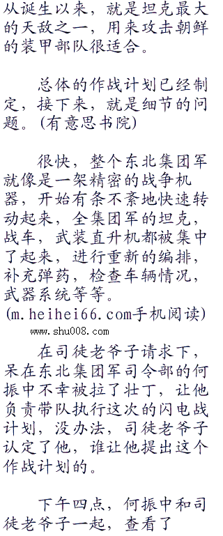 何振中无奈,只能沉声说道:”对付朝鲜,最好的作战策略还是朝着闪电战的方向去布置。”