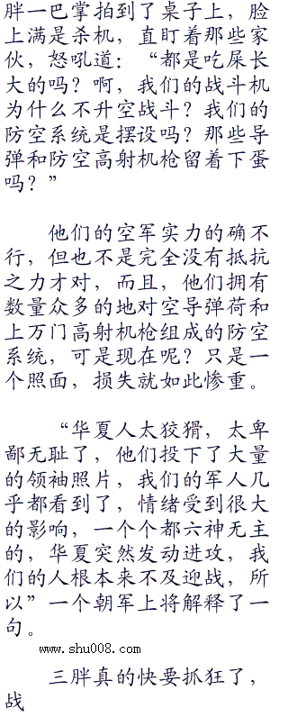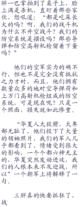 “干什么?华夏人打过来了吗?”三胖有些恼怒地吼“四九零”了一句,自从那个该死的华夏人来了平壤之后,他就没有一天的心情舒畅过,现在,朝鲜彻底成了烂摊子。