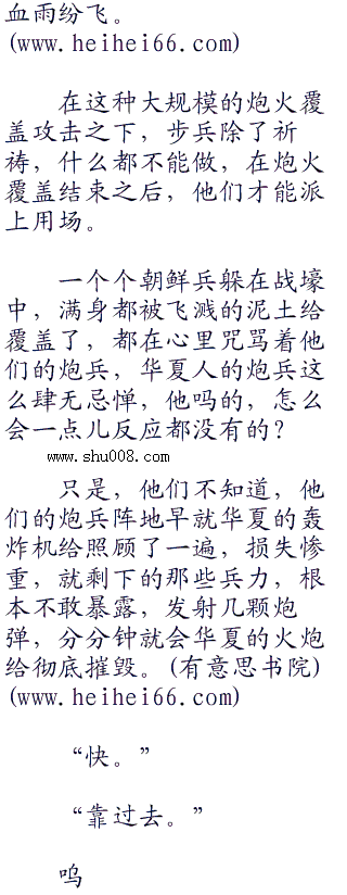鸭绿江对岸的朝鲜阵地上,一团团巨大的火球升腾而起,那些还沉浸在三胖的裸照风波之中的朝鲜兵只能尽量蜷缩着身体,躲在战壕中,泥土就像是下雨朝着四周飘落。运气不好的,炮弹直接落到战壕中,立刻就是一片