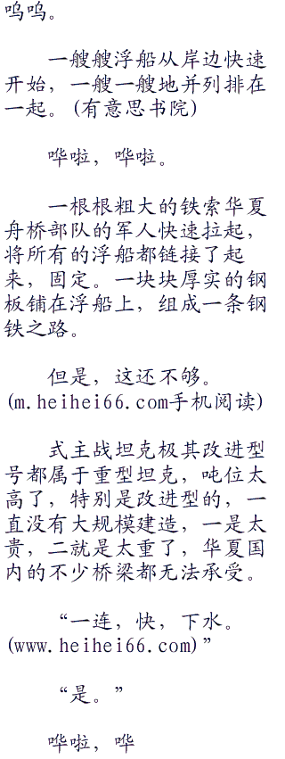 “舟桥部队立刻搭建浮桥,告诉他们,只有一个小时的时间,必须保证式主战坦克快速通行。”