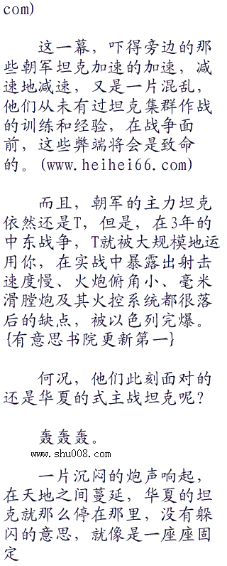 但是,似乎朝鲜的坦克集团指挥官并不擅长这种集团冲锋的战斗,行进之间,战斗阵型显得有些散乱,甚至,在通过一些狭长的地方的时候,还出现了堵车,撞车的事情。