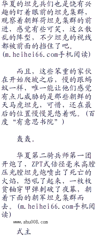那些指挥官还在大吼着,激励着士气,可是瞬间就被爆炸的轰鸣声给掩盖了,前面的山坡上,一团团火光闪现,硝烟弥漫,一个个庞大的钢铁黑影出现,发出了沉重的咆哮声。