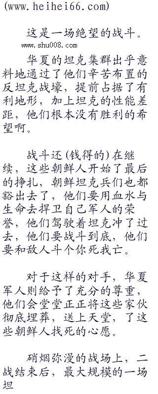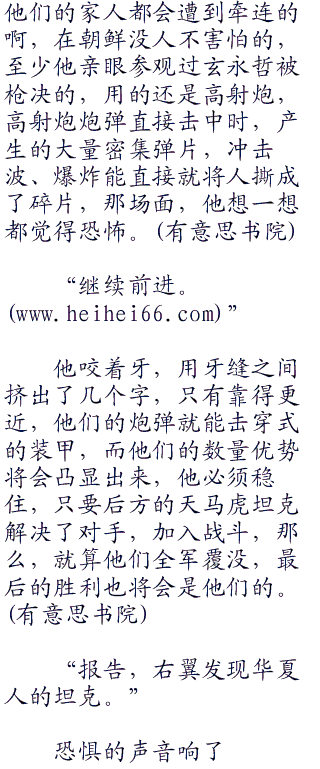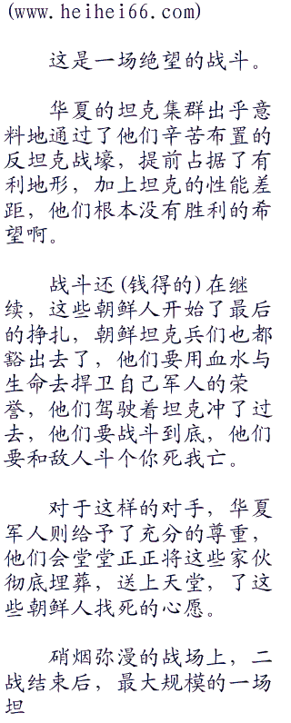 朝军坦克终于开炮了,毫米滑膛炮喷出了火焰,那些朝鲜兵一个个脸都涨红了,刚才距离不够,他们只能被动挨打,现在,他们终于可以让那些该死的华夏人见识一下他们的厉害了。