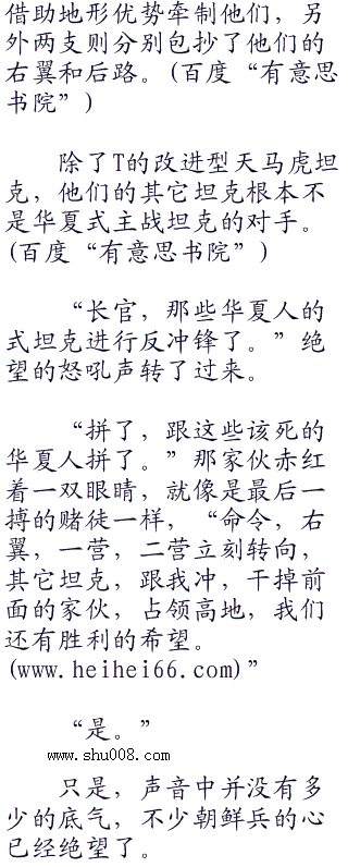 一切都在华夏的预料之中,突然转向的式主战坦克速度显然比那些朝军的t坦克更加快速,何况,那些家伙铁疙瘩正在爬坡呢。