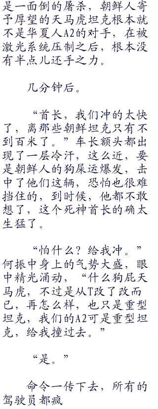 何振中亲自率领的a2主战坦克如同钢铁洪流一般,席卷而来。