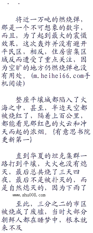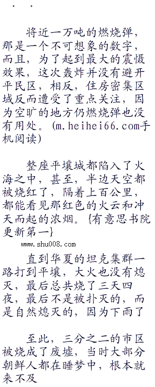 而同一时间,整个平壤已经被火海覆盖了,半空不时就有尖啸着的燃烧弹落下,而无数的高炮子弹,地对空导弹划过的痕迹。