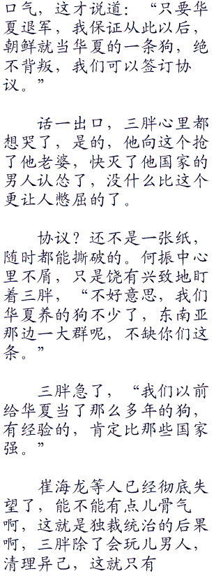 闻言,崔海龙叹了口气,这才说道:“华夏人的坦克集群势如破竹,我们的人根本抵挡不住,现在,他们集合了大概一千辆坦克包围了平壤的东,北,西三面。”