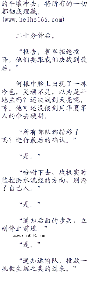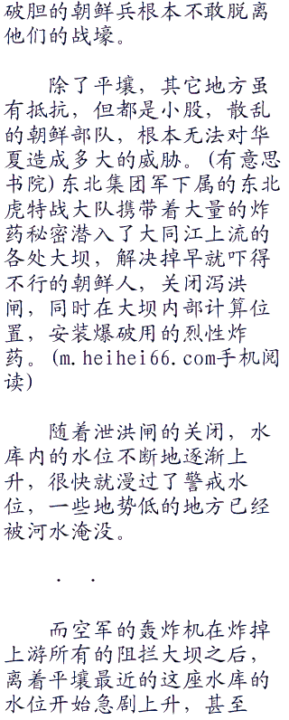 “现在,平壤已经被我们合围,他们也逃不出来,炸掉之前,撒一些传单,通知一下沿岸的朝鲜人,如果还被淹死,真不能怪我们了。”犹豫了一会儿,何振中还是补充了一句。