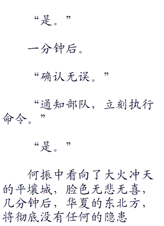何振中心里已经下令了决心,这就是他的为将之道,他开始藐视战争过程中的一切生命,除了自己人的,只有让自己成为恶魔,才能赢得战争,至于如何去胜利,其实已经并不重要。
