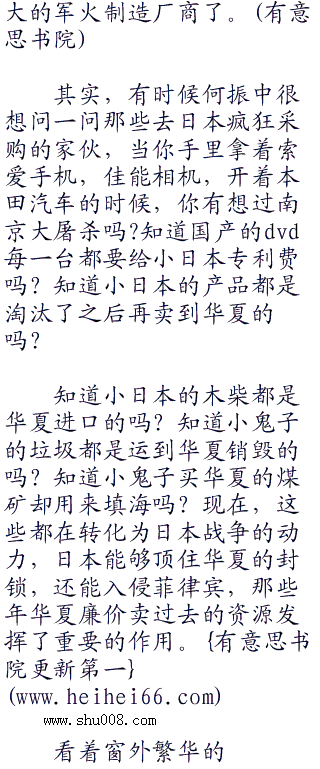 何振中清楚,曾经,有一个鬼子官员公然说过这样一句话,大意就是,无论小鬼子怎么热情对待韩国人,棒子都不会买他们的产品,而小鬼子无论如何粗鲁的对待华夏人,华夏人一样求小鬼子卖给他们产品。