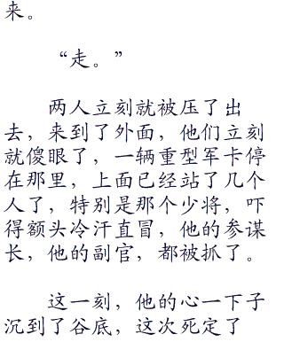 何振中摇摇头,叹了口气,“我没什么,只是两个卫兵,哎,没死在战场上,没死在敌人手中,却死在了自己人手里。”