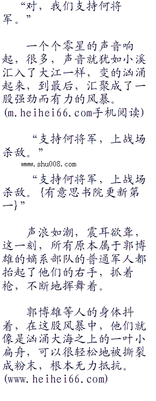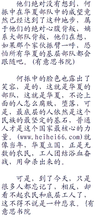 听着他的话,周围郭博雄的心腹部队的军人也都看向了何振中,眼神钦佩,这话说出了他们所有普通军人的心声。他们为了什么加入军队?还不是为了心中的那一腔热血,为了心中的那一份信念,他