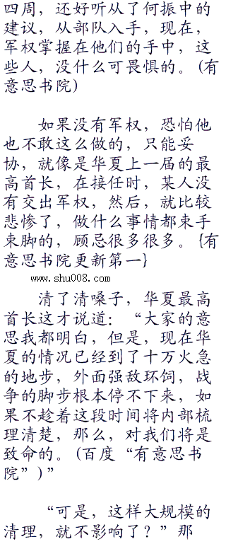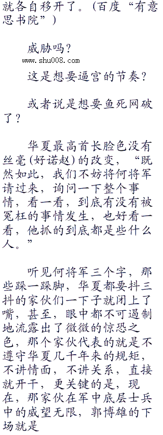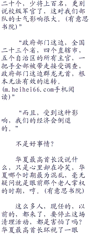 “我也这么认为,现在,部队之中,军委班子中第一,第二的领导都落马了,其他上将一名,中将