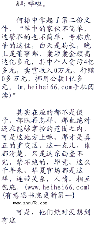 “9月,派人被打冷枪,企图暗杀提倡反腐的刘将军,可惜,刘将军的警卫击毙凶手。手机阅读更方便m..com9月下旬,刘将军住军区招待所房的yu室煤气爆炸,当时已是晚上时,刘将军刚巧不在房间,躲过暗杀,也已经证实是他干的,另外,还有两起均是暗杀未遂。另外,我刚回京,遭遇的暗杀跟他也脱不了干系。”